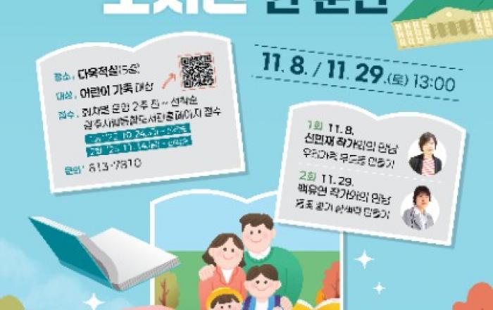 광주광역시립산수도서관이 오는 11월 8일과 29일 두 차례 ‘가족을 위한 북콘서트’를 개최한다.이 행사는 ‘책 한 권, 가족 한 컷, 도서관 한 순간’을 주제로, 기존의 강연 중심 북콘서트와 달리 작가와의 만남과 가족 참여형 체험 프로그램을 결합한 것이 특징이다.산수도