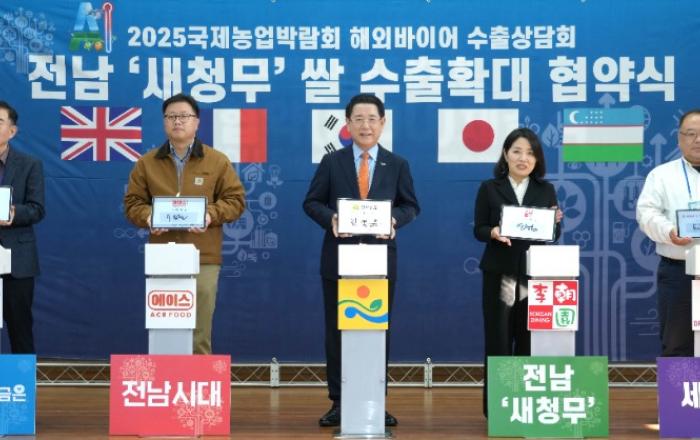 2025 국제농업박람회가 23일 전남도농업기술원에서 개막, 7일간의 여정에 들어갔다. 전남 대표 브랜드 쌀 ‘새청무’가 4개 국과 2천 톤 규모 수출 협약을 하는 등 박람회 첫날부터 의미있는 결실을 보였다.이날 개막식에는 송미령 농림축산식품부 장관, 김영록 전남도지사,