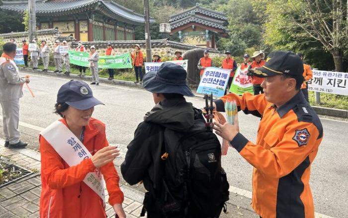 광주소방, 무등산서 가을철 안전산행 캠페인광주광역시 소방안전본부는 26일 무등산국립공원 증심사지구 탐방안내센터에서 안전한 산행 문화 확산을 위한 ‘2025 가을철 산악안전의 날’ 행사를 개최했다.행사에는 광주소방안전본부·동부소방서·무등산국립공원사무소·무등산119시민산악