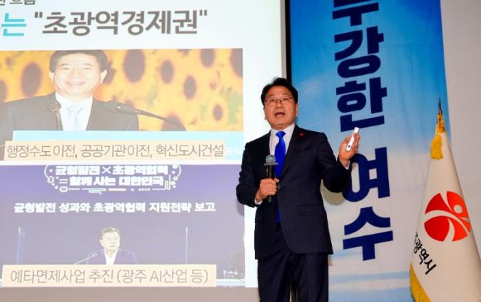 강기정 광주광역시장은 30일 ‘전남광주통합특별시 설치를 위한 특별법안’이 국회에 발의된 것과 관련해 “부강한 광주전남을 만들기 위해 지난 4주 동안 쉼 없이 달려온 지금, 참으로 기쁘고 의미있는 성과를 이뤘다”며 “시민 여러분의 관심과 지지가 있었기에 가능했다”고 소회