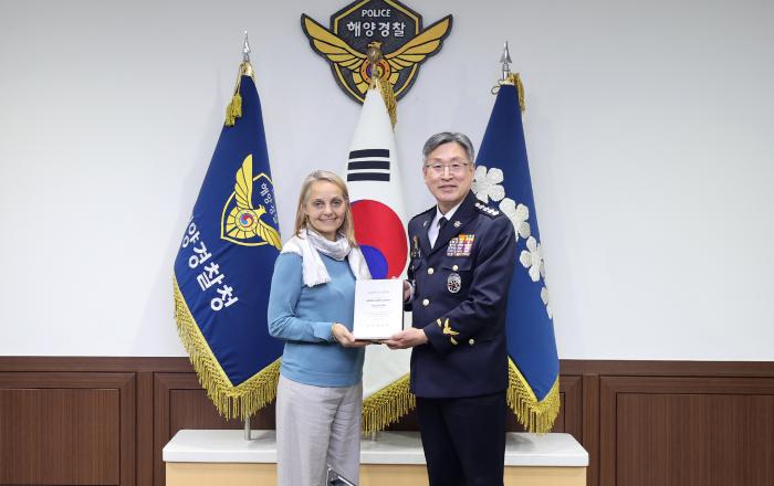 해양경찰청은 “프랑스 본사 루이비통(LVMH 社)로부터 감사패를 전달받았다.”고 15일 밝혔다.해양경찰청에 따르면, 루이비통(LVMH 社)를 대표해 프랑스 본사 지식재산권 보호 총괄이사 발레리 소니에(Valerie Sonnier) 등 3명이 해양경찰청을 방문하여 김종욱