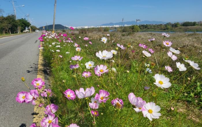 “영산강 코스모스 꽃길 따라 가을정취 만끽하세요.”광주광역시푸른도시사업소는 극락교에서 서창교까지 왕복 10㎞의 영산강 제방도로에 이달 초 개화를 시작한 삼색 코스모스가 중하순께 절정에 이를 것이라고 밝혔다.영산강 코스모스 꽃길은 광주시푸른도시사업소에서 지난 7월 하순부