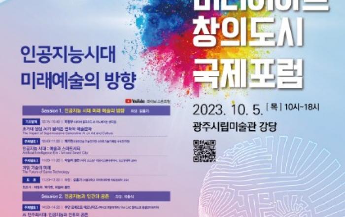 광주광역시(시장 강기정)는 오는 10월 5~6일 광주시립미술관 일원에서 ‘2023 유네스코 미디어아트 창의도시 국제포럼’을 개최한다.이번 국제포럼은 ‘인공지능시대 : 미래예술의 방향’이라는 주제로 국내외 미디어아트 창의도시 전문가들이 참석해 인공지능(AI)의 현주소에