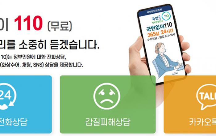 추석 연휴에도 국민권익위원회가 운영하는 ‘국민콜110’을 통해 병원·약국 정보, 교통상황 등 생활정보 안내와 행정기관 민원 상담이 24시간 가능하다. 국민권익는 추석 연휴가 시작되는 오는 28일부터 30일까지 국번없이 110번을 누르면 무료 상담이 가능한 ‘국민콜110