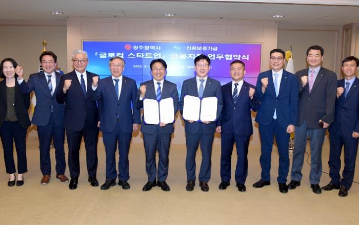 광주광역시(시장 강기정)와 신용보증기금은 20일 시청 비즈니스룸에서 ‘글로컬(Glocal) 스타트업 공동지원사업 추진을 위한 업무협약’을 체결했다. ※ 글로컬(Glocal) : 글로벌(Global)과 지역(Local)의 합성으로 지역 기반의 세계화를 뜻한다.강기정 광