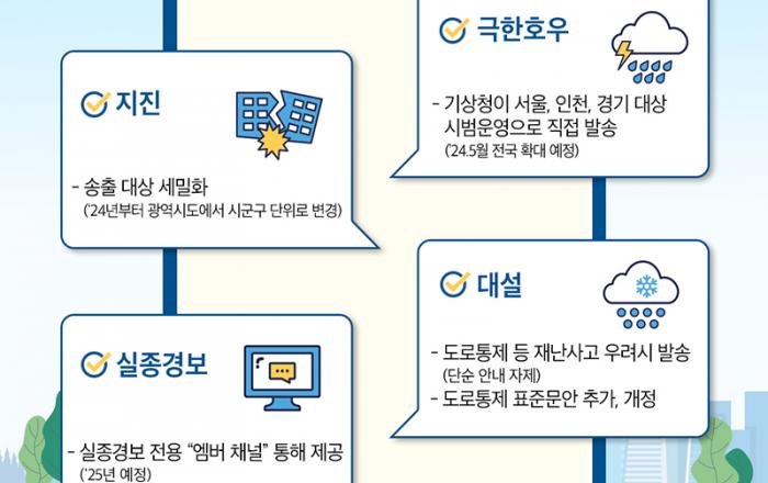 정부가 ‘재난문자’ 송출기준을 국민 생활에 맞게 개선, 관련 재난정보를 꼭 필요한 순간에 신속하게 전달한다. 행정안전부는 늘어나는 재난문자로 인한 국민의 피로감과 불편을 해소하기 위해 재난문자 송출기준을 올해 하반기까지 단계적으로 개선한다고 7일 밝혔다. 이