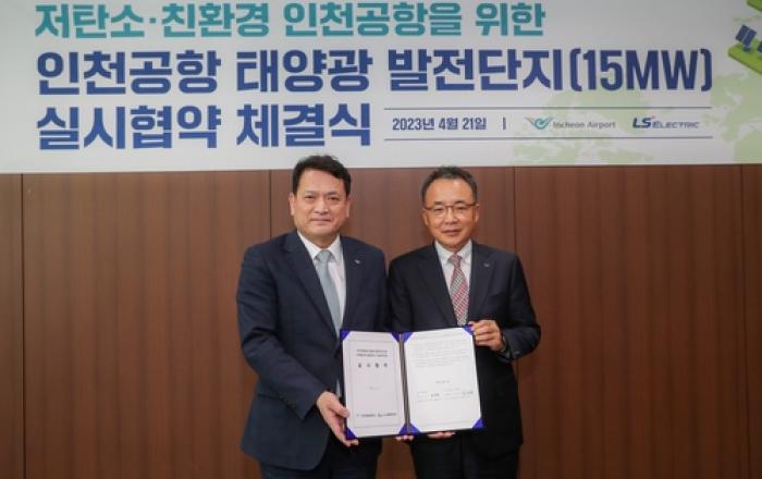 인천국제공항공사가 21일 오후 공사에서 LS 일렉트릭 주식회사(대표 김동현)와 '태양광 발전단지건설 및 운영을 위한 직접 전력구매계약에 관한 실시협약'을 체결했다고 밝혔다. 이번 실시협약은 공사가 지난해 2월 가입한 RE100 달성을 위해 수립한 중장기 계획의 일환