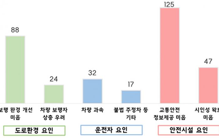 지난해 어린이 보호구역 내 교통사고 다발지역을 점검한 결과 총 85건의 사고가 발생한 가운데, 횡단 중 사고가 41.2%(35건)로 가장 많은 것으로 나타났다. 이어 자전거 탑승 중 사고가 34.1%(29건)로 뒤를 이었다. 가해 운전자 위반유형으로는 안전운전 불