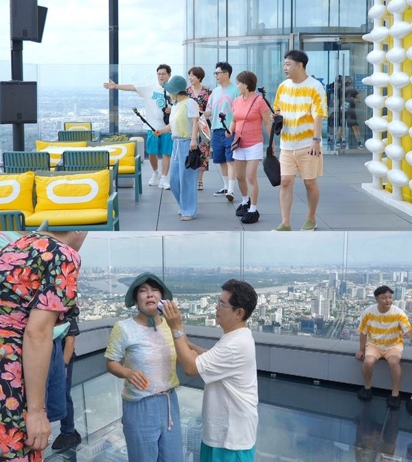 그런가 하면 지석진과 조혜련은 스카이워크 근처도 못 가고 굳어버린다. 이런 가운데 조혜련은 스카이워크 앞에서 눈물까지 펑펑 쏟는다고. 막내 조혜련의 눈물에 언니, 오빠들도 모두 당황한다는 후문. 이에 더해 조혜련은 자신이 눈물을 쏟게 된 이유인 트라우마까지 공개한다고 해 궁금증을 자극한다.