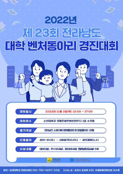 전라남도는 3일 순천대학교 국제문화컨벤션관에서 청년 창업가의 등용문인 제23회 대학 벤처동아리 경진대회가 열린다고 밝혔다.