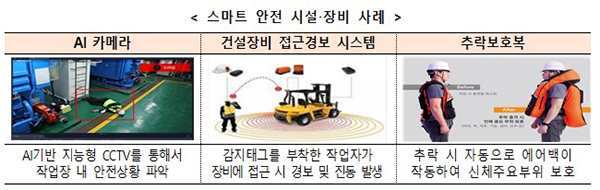 한편 건설·제조업은 위험한 작업환경 개선을 위한 AI 카메라와 건설장비 접근 경보 시스템, 추락보호복 등 스마트 장비·시설을 집중 지원하고 근로자 안전확보 목적의 CCTV 설치도 제도화한다.