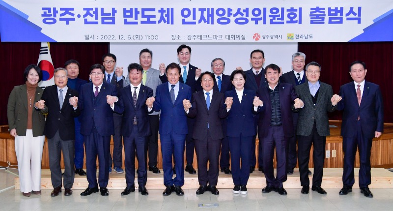 광주광역시와 전라남도는 6일 광주테크노파크에서 강기정 광주광역시장과 박창환 전라남도 정무부지사, 양향자 국회의원, 정성택 전남대 총장 등 20여 명이 참석한 가운데 ‘광주·전남 반도체 인재양성위원회’(이하 ‘인재양성위’) 출범식을 가졌다.