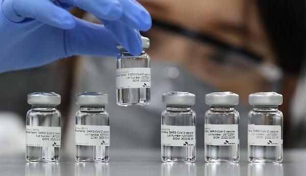 ▲ 7월 13일 경기 성남시 분당구 SK바이오사이언스 연구소에서 연구원이 국산 1호 코로나19 백신 스카이코비원을 들어보이고 있다. [사진=SK바이오사이언스]