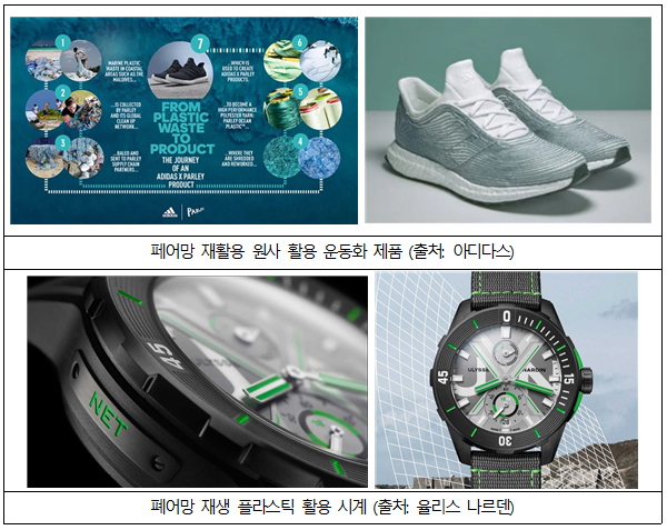 최근 국내 대기업은 물론 해외 유명 브랜드에서는 친환경 ESG경영을 위해 해양폐기물 업사이클링에 대한 투자를 확대하며 재활용한 운동화, 가방, 시계, 핸드폰 등을 출시하고 있다.