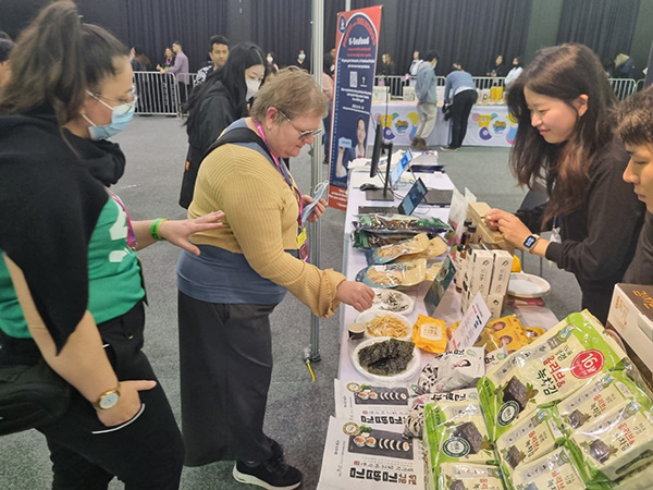 ▲ 지난 8월 11~14일 호주 시드니에서 열린 케이팝 페스티벌에서 방문객들이 한국의 ‘김’을 시식하고 있다. [사진=해양수산부]