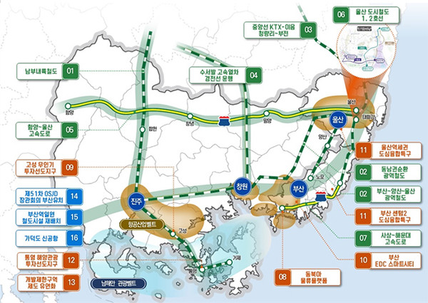 부산, 울산, 경남을 하나로 연결하는 부산-양산-울산 광역철도에 대한 예비타당성 조사는 내년에 착수하는 것을 추진하고 동남권 순환 광역철도의 사전타당성 조사도 내년 말 완료하기로 했다.