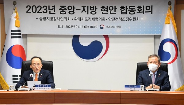 추경호 경제부총리와 이상민 행정안전부 장관 주재로 관계부처와 243개 자치단체 부단체장이 참여한 가운데 열린 이날 회의에서 정부는 재정 상반기 신속집행계획, 지방공공요금 조정 동향 결과 등을 공유하고 지자체에 협조를 요청했다.