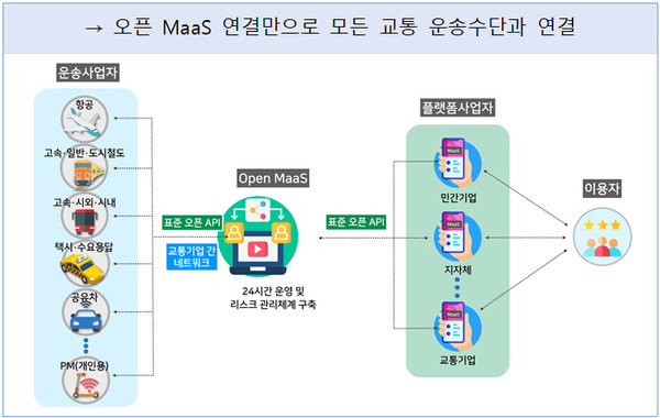 이를 위해 공공기관 등을 대상으로 오픈 MaaS를 구축·운영하는 중계사업자를 공모해 관련 데이터 표준 및 기반 시스템을 구축한다.