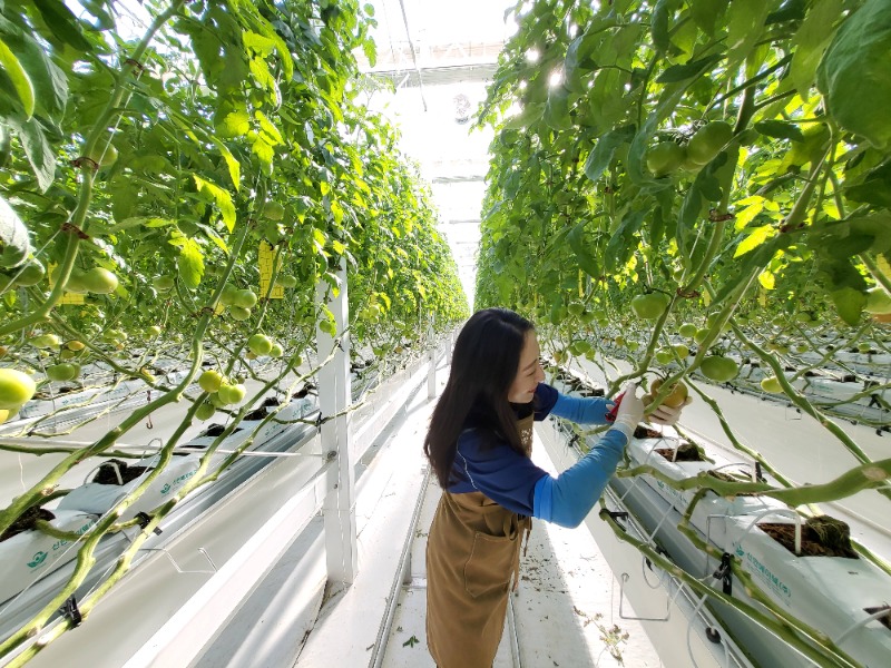 이들은 토마토 생육에 적합한 온도습도 등 환경을 조절하고 전문가 컨설팅을 받으며 양액 조제, 솎아내기 작업 및 병해충 방제 등 농작업을 직접 하고 있다.