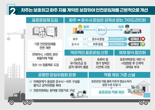 아울러 국토부는 기존의 안전운임제를 명칭부터 내용까지 전면 개편한 ‘표준운임제’를 도입하기로 했다.