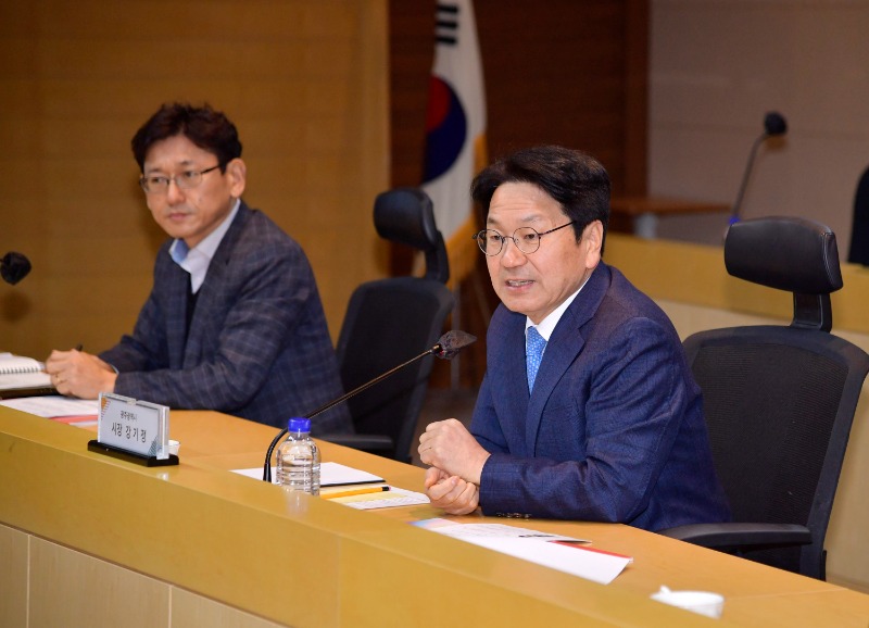 이날 업무보고에는 강기정 시장을 비롯해 송진희 광주디자인진흥원장, 나건 광주디자인비엔날레 총감독 등 10여 명이 참석했다.
