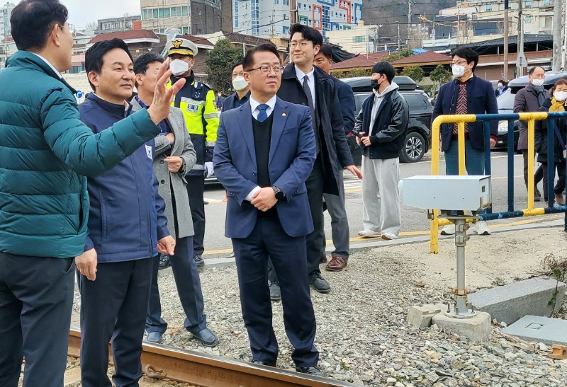 전라남도는 16일 순천 오천동 경전선 공사 예정 구간을 방문한 원희룡 국토교통부장관에게 순천 도심 통과 구간의 우회 반영을 건의했다고 밝혔다.
