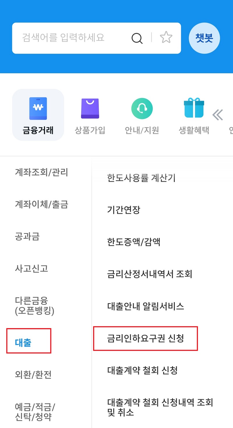 스마트뱅킹에서 금리인하요구권 신청하는 방법. (사진=우리은행)