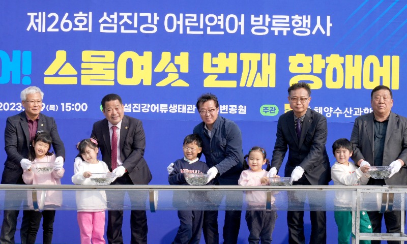 올해로 26번째를 맞는 이날 행사에는 구례군 유관기관, 지역 주민, 초중학생 등 300여 명이 참석해 어린 연어 50만 마리를 방류하고 긴 여정의 힘찬 출발을 응원했다.