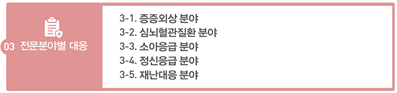 한편 개별 의료기관에서 24시간, 365일 대응이 어려운 중증응급질환은 병원 간 협력 네트워크를 통한 지역완결적 대응체계를 마련한다.