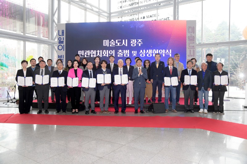 광주광역시(시장 강기정)는 23일 광주시립미술관 1층 로비에서 광주미술문화를 선도하는 12개 기관·단체·협회·학계와 100여 명의 문화예술계 인사들이 참석한 가운데 ‘미술도시광주 민관협치회의’를 출범했다.