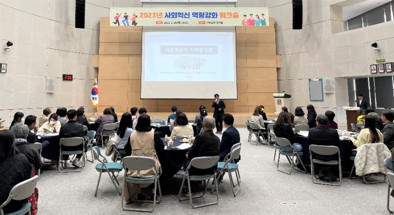 워크숍에선 2023년 사회혁신 사업을 추진한 지역공동체 대표와 시군 사회혁신 담당 공무원 등 80여 명이 참석해 상호 정보를 공유하고 특강을 통해 역량을 강화했다.