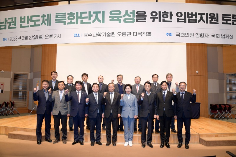 광주광역시(시장 강기정)는 27일 광주과학기술원 오룡관 다목적홀에서 국회 법제실과 양향자 국회의원(무소속·광주 서구을)실 공동으로 ‘호남권 반도체 특화단지 육성을 위한 입법지원 토론회’가 열렸다고 밝혔다.