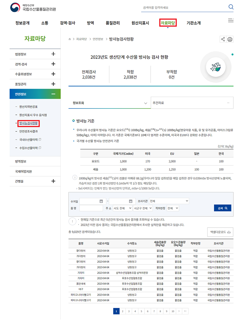 국립수산물품질관리원서 ‘방사능 검사현황 서비스’ 통합 제공