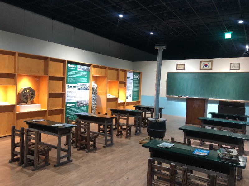 이 밖에 전시장에는 ‘콩나물시루 학교’로 일컬어지던 과거의 교실 풍경을 담았다. 짝과 나눠 쓰던 작은 책상과 풍금, 난로 등이 고스란히 재현됐다. 중학교 입학 무시험 추첨기도 체험용으로 선보인다.