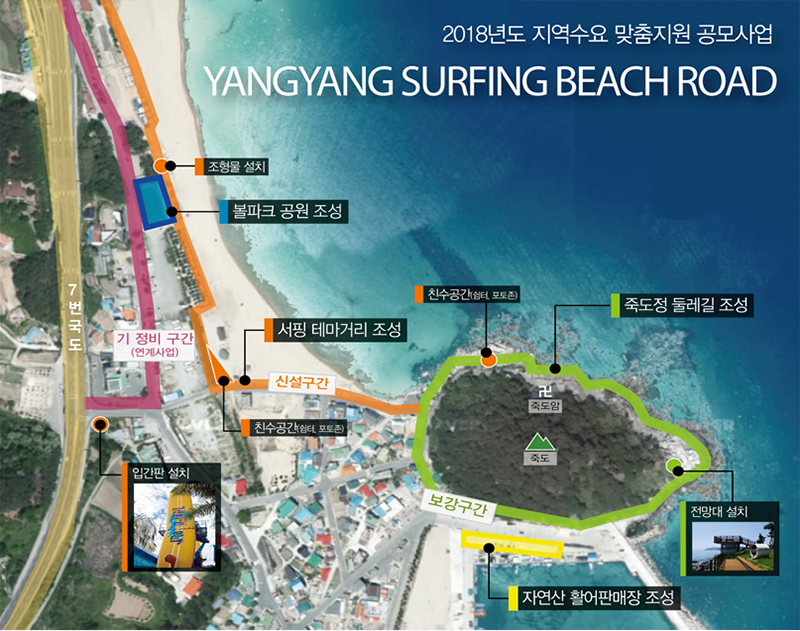 또 서핑의 핫플레이스로 떠오른 양양은 지난 2018년 사업 선정 후 테마거리 조성 등 서핑비치로드 조성사업을 추진해 관광객 유치에 큰 도움을 받고 있다.