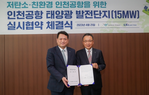 인천국제공항공사가 21일 오후 공사에서 LS 일렉트릭 주식회사(대표 김동현)와 '태양광 발전단지건설 및 운영을 위한 직접 전력구매계약에 관한 실시협약'을 체결했다고 밝혔다.