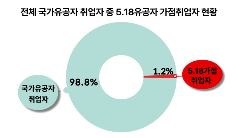- 국가유공자 취업자 중 5·18유공자 가점 취업자 1.2%