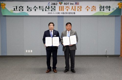전남 고흥군은 지난 5월 2일 군청 팔영산홀에서 미국 현지 농수산식품 무역회사인 RDT Inc.와 고흥 농수특산물 5백만 불의 수출협약을 체결했다.