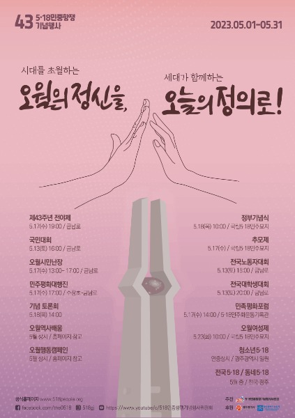 ‘오월의 정신을, 오늘의 정의로! 제43주년 5·18기념행사 다채롭게 열린다