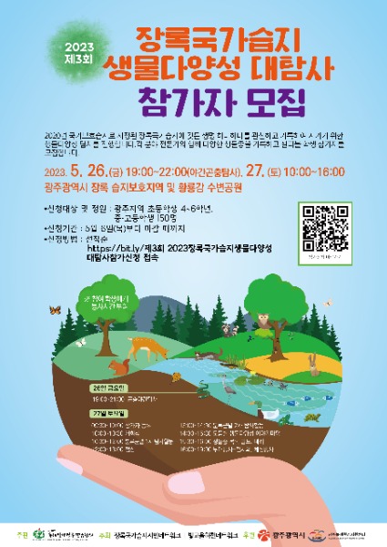 광주광역시(시장 강기정)는 오는 26~27일 이틀간 도심 첫 국가습지인 장록습지에서 ‘제3회 2023 장록국가습지 생물다양성 대탐사 캠프’를 운영한다.