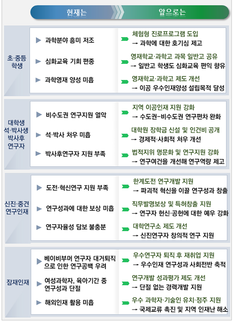 정부는 세계 주요국 간 우수 연구·기술인재 확보를 위한 각축전이 치열한 만큼, 한국도 인재를 토대로 신성장동력을 창출한다는 계획이다.