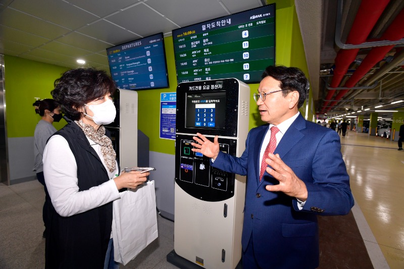 강 시장은 특히 주차빌딩을 이용하는 시민들에게 불편사항은 없는지 묻고 한국철도공사(코레일) 관계자들과 함께 주차 환경, 진출입로 등을 점검했다.