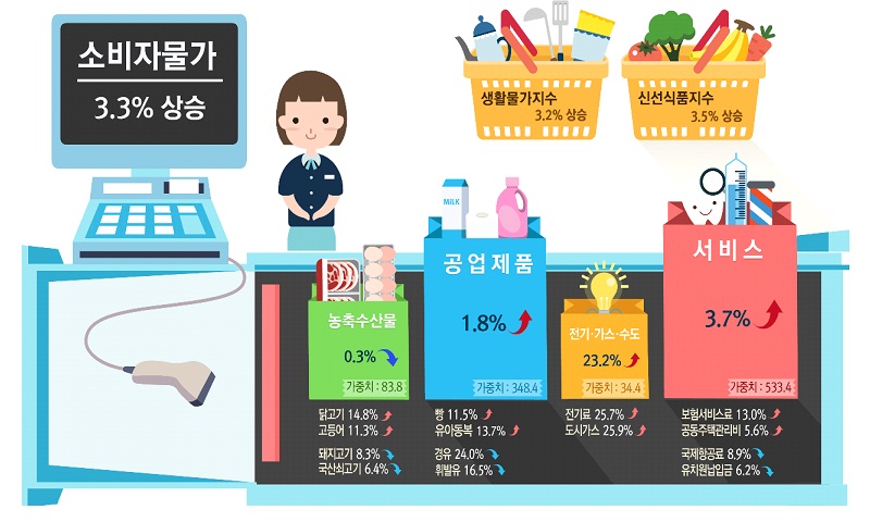 5월 소비자물가 상승률 3.3%↑…19개월만에 최저치