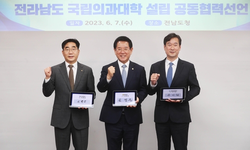 전남도와 목포대·순천대는 선언문을 통해 ▲전남도민의 의료여건 개선과 당면한 지역소멸 위기 타개에 앞장 ▲국립의대 설립을 위한 양 대학 간 역량집중 및 상호협력 강화 ▲의대 정원 확대 논의에 의대 신설 반드시 포함토록 촉구 등 내용을 담아 공동협력 의지를 밝혔다.