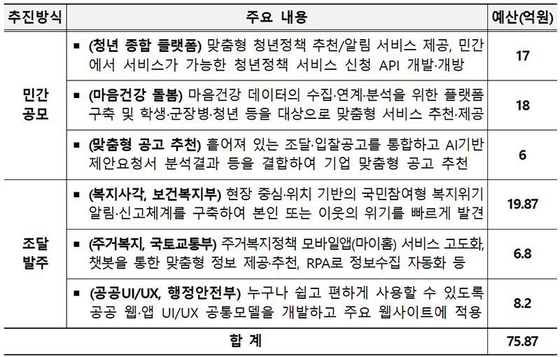 이에 흩어진 청년지원 정책 정보를 민간 플랫폼을 중심으로 연계하고 마음건강 관련 데이터 관련 플랫폼을 구축하는 등 디지털플랫폼정부로 달라지는 새로운 일상을 추진할 계획이다.