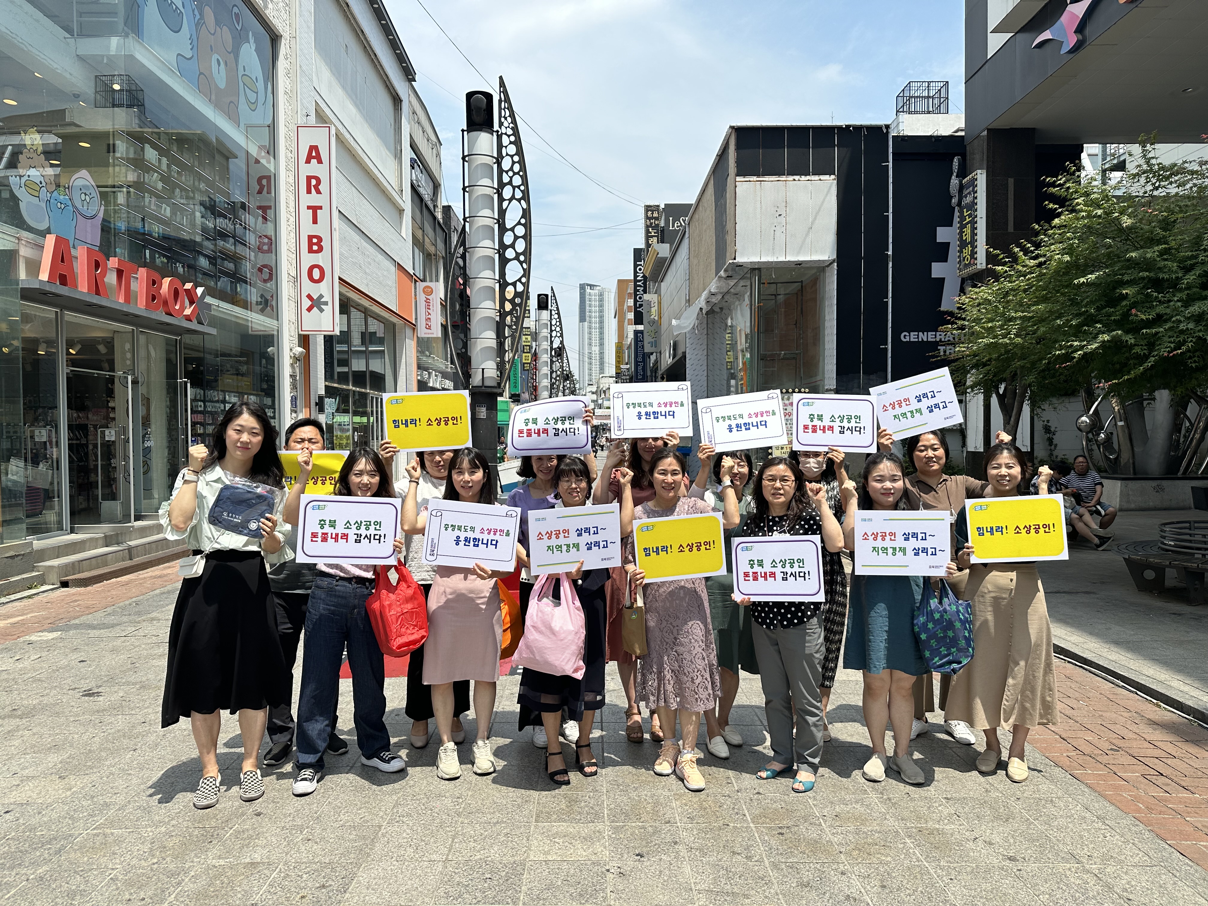 주요 캠페인 내용은 ‘힘내라 소상공인!’, ‘우리동네 가게를 애용합시다!’, ‘충북 소상공인 돈쭐내러 갑시다!’, ‘소상공인 살리고, 지역경제 살리고~’ 등으로 지역 영세 소상공인을 격려했다.