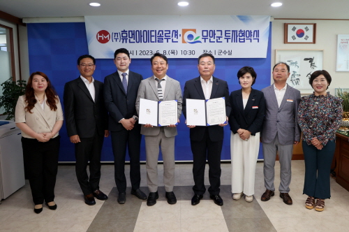 전남 무안군은 지난 8일 무안군청에서 무안군수, ㈜휴먼아이티솔루션 최봉두 대표가 참석한 가운데 소프트웨어 개발 및 신사옥 건립 등을 위한 239억 원 규모의 투자협약을 체결했다.