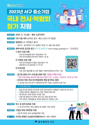 광주광역시 서구가 국내 전시박람회에 참가하는 중소기업을 대상으로 전시회 부스 및 장치 임차료를 지원한다.