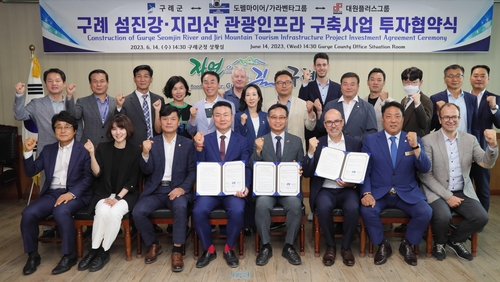 전남 구례군은 지난 14일 도펠마이어/가라벤타그룹, 대원플러스그룹과 '구례 섬진강·지리산 관광인프라 구축사업 투자협약'을 체결했다고 밝혔다.