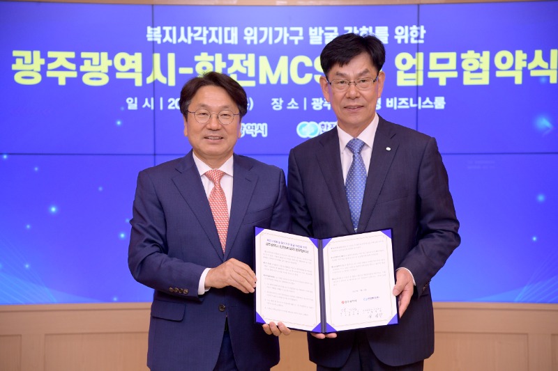 광주광역시(시장 강기정)는 6일 한전MCS㈜와 ‘복지사각지대 위기가구 발굴과 지원을 위한 업무협약’을 체결했다.